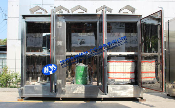 1、烘烤產(chǎn)品:烘箱內(nèi)放置6件尺寸為W1000*L1200*H1160的包裝桶,每個包裝桶容積為1000L。