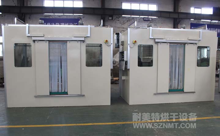 1,物流人員在加熱箱后面把料車推到加熱房里,關(guān)上卷簾門開始加熱。